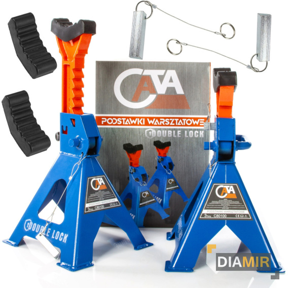 Podstawki warsztatowe z podwójną mechaniczną blokadą. Wykonane z grubej stali. Podstawki warsztatowe w zestawie z gumą zabezpieczającą.