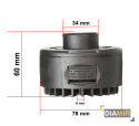 Głowica z żyłką do kosy przeznaczona do ciecia trawy itp. Wykonana z mocnych i trwałych materiałów. Głowica półautomatyczna, wysuwająca żyłkę po uderzeniu głowicą o ziemię.