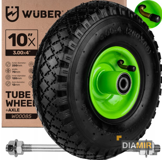 KOŁO KÓŁKO DO TACZKI 10" 3,00x4 4PR 100KG MOCNE Z DĘTKĄ POMPOWANE WUBER