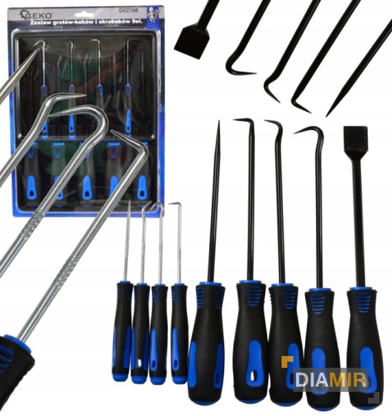 • KOMPLET GROTÓW-HAKÓW I SKROBAKÓW 9 ELEMENTÓW DEMONTAŻ ORINGÓW