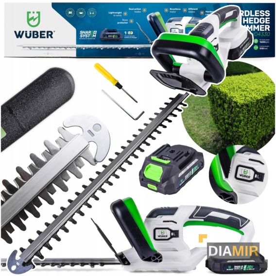 Nożyce elektryczne akumulatorowe Wuber 51 cm 20 V AKU 2,0 Ah do żywopłotu