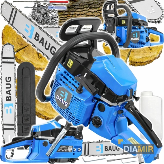 Spalinowa piła łańcuchowa renomowanej marki BAUG z bardzo mocnym i wydajnym silnikiem 5,2 KM to niezastąpione urządzenie dla każdego pilarza. Duża moc piły radzi sobie z wszelakim rodzajem drewna i drzew, idealnie sprawdza się do cięcia zarówno drewna opałowego jak i okrzesywania gałęzi. Wyposażona została w System Easy Start, który znacznie redukuje siłę niezbędną do uruchomienia silnika. Piła posiada również system anty wibracji i automatycznego smarowania. Dobrze umiejscowiona rękojeść i środek ciężkości urządzenia pozwala na długotrwałą pracę bez zmęczenia. Piła cechuje się bardzo dobrą jakością wykonania oraz bardzo dobrymi podzespołami użytymi do jej budowy. Jej mała masa oraz duża moc sprawiają że staje się niezastąpiona w każdym gospodarstwie domowym.