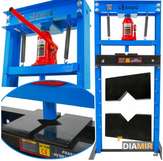 Wysokiej jakości prasa hydrauliczna o nacisku 20 ton. Jej masywna i mocna konstrukcja sprawia, że znajduje zastosowanie w każdym warsztacie motoryzacyjnym lub produkcyjnym. Prasa hydrauliczna przeznaczona do prostowania, gięcia, wyciskania, przepychania. Wyposażona w regulację wysokości łoża.