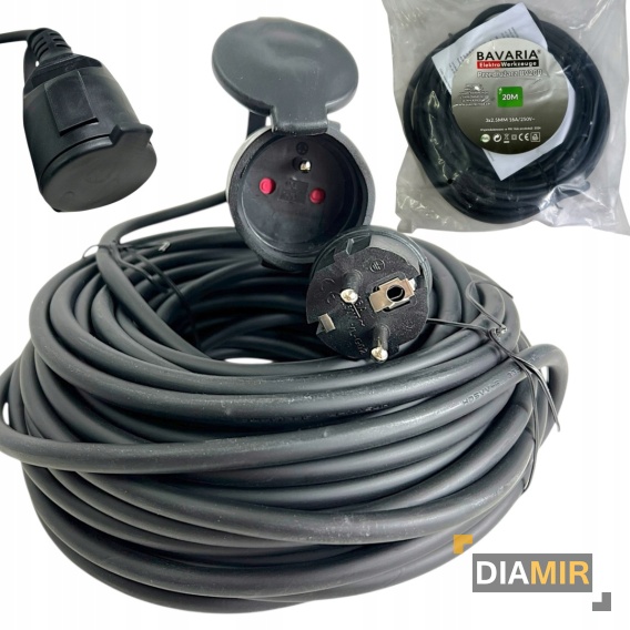 PRZEDŁUŻACZ UNIWERSALNY 20m PRZEDŁUŻACZ Z ZABEZPIECZENIEM BAVARIA