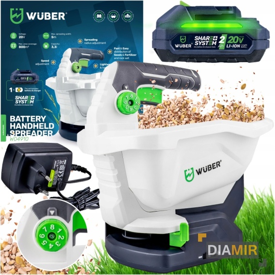 SIEWNIK AKUMULATOROWY DO TRAWY NAWOZU ROZSIEWACZ 3,3 L RĘCZNY WUBER
