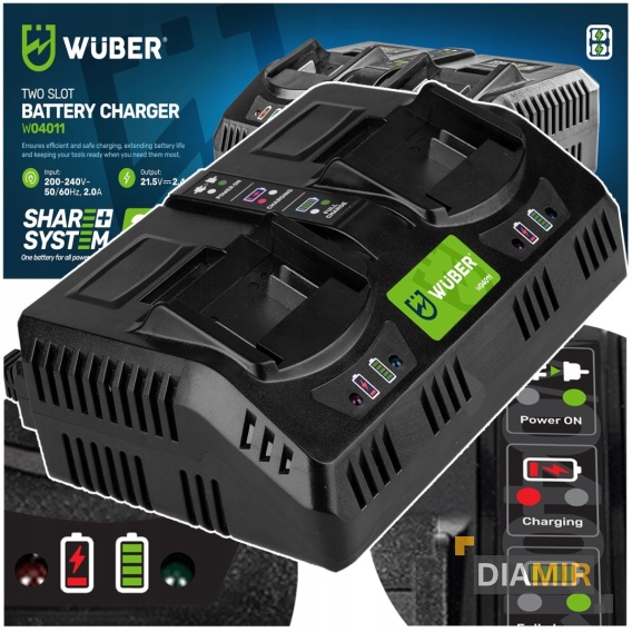 Szybka ładowarka podwójna do akumulatorów baterii 21.5 V Wuber Share+System