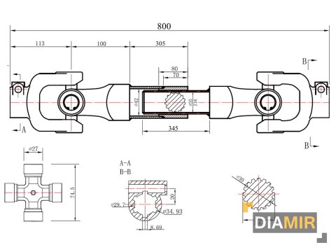 Wałek posiada typowy frez zastosowany w ciągnikach C-330, C-360, T-25 i innych Posiada dużą tolerancję PRZYKŁADOWE ZASTOSOWANIE Opryskiwacz Kosiarka rotacyjna Glebogryzarka Rozrzutnik DANE TECHNICZNE Maksymalny moment obrotowy 530 Nm Długość wałka nierozciągniętego 80 cm Długość tolerancji wysuwu od 80cm do 105cm Frez Zatrzaski do szybkiego montażu Wałek w osłonce plastikowej Średnica frezu 35mm