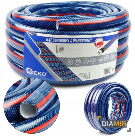 Wąż ogrodowy 4-warstwowy 1” 10m wyprodukowany w Polsce. Charakteryzuje się dużą odpornością na warunki atmosferyczne oraz podniesioną odpornością na uszkodzenia mechaniczne dzięki 4-warstwowej strukturze wzmacnianej plecionym krzyżowym zbrojeniem tekstylnym. Ponad to materiały z jakich został wykonany zapobiegają osadzaniu się glonów wewnątrz węża.