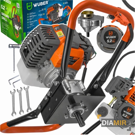 Dwusuwowy silnik o pojemności 62 cm³ generuje wysoką moc i osiąga prędkość obrotową do około 11 000 obr./min, co zapewnia szybkie i efektywne wykonywanie otworów pod słupki, sadzonki czy fundamenty