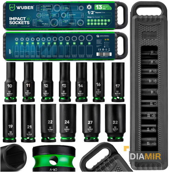 ZESTAW NASADEK UDAROWYCH 13 SZT. 1/2" 6-KĄTNE DŁUGIE NASADKI 10-32MM WUBER