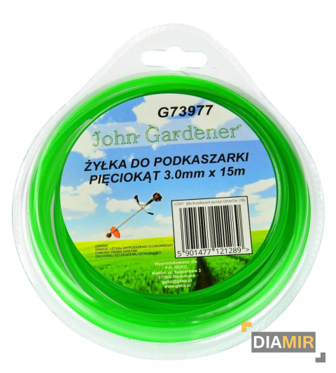 Żyłka tnąca przeznaczona do kos spalinowych i podkaszarek elektrycznych. Żyłka o przekroju pięciokąta, średnicy 3,0mm i długości 15 m wykonana została z wysoce wytrzymałego tworzywa sztucznego.
