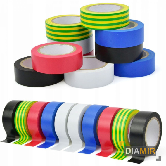 Zestaw 10 taśm izolacyjnych w różnych kolorach. Taśmy cechują się bardzo dobrymi właściwościami izolacyjnymi, wykonane przy użyciu PVC oraz kleju na bazie kauczuku. Charakteryzuje się dużą przylepnością do stali oraz wysoką elastycznością. W skład zestawu wchodzi 10 taśm izolacyjnych w 5 kolorach.