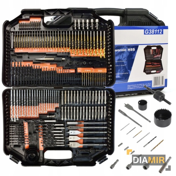 Rozbudowany zestaw wierteł, bitów, otwornic oraz nasadek do wkrętarki. Zestaw znajdzie zastosowanie w każdym warsztacie domowego majsterkowicza. Całość zestawu zapakowana w poręczną walizkę z tworzywa sztucznego.