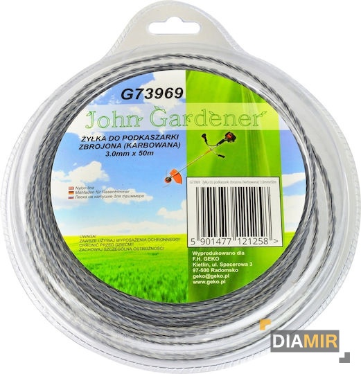 Żyłka tnąca przeznaczona do kos spalinowych i podkaszarek elektrycznych. Żyłka karbowana o przekroju kwadratu, średnicy 3,0mm i długości 50 m wykonana została z wysoce wytrzymałego tworzywa sztucznego, dodatkowo zbrojona stalowym drutem.
